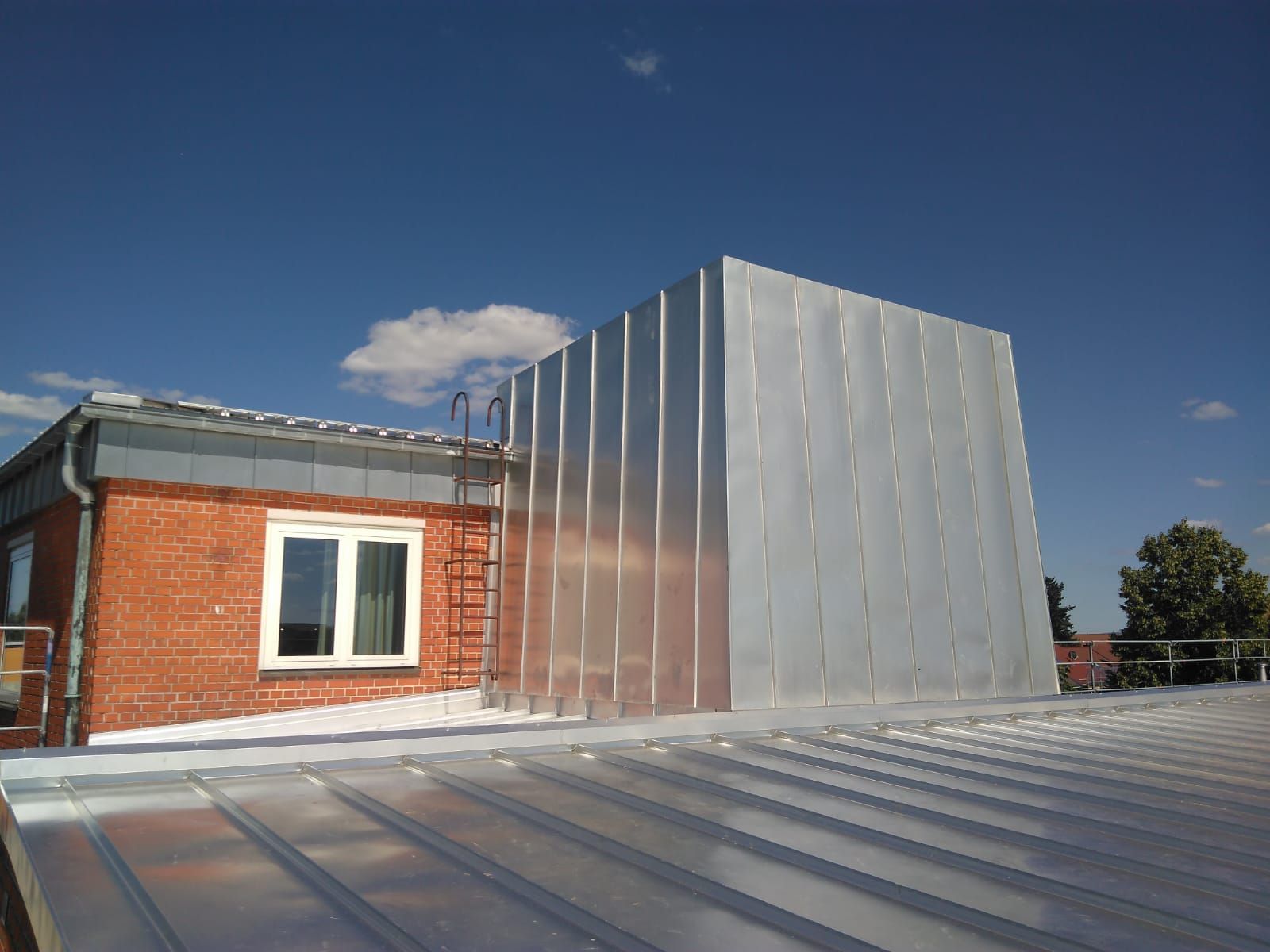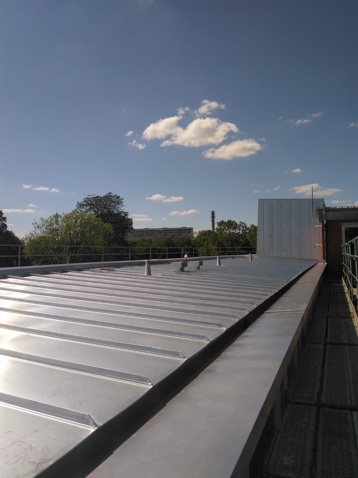- Martinschule Augsburg ca. 690 m2 Uginox FTE Stehfalzdacheindeckung, ca 130 Lfm Gesimsabdeckungen